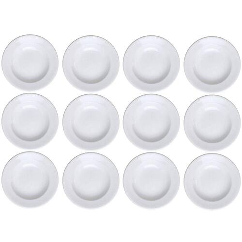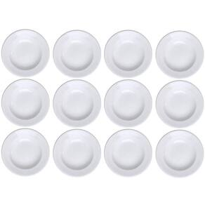 Garantia: 90 dias / Peso: 8,59kg / Cor predominante: branco / Referência: 7891658934433X12 Dimensões de cada prato: 23,5cm (D) x 4cm (A); Capacidade de cada prato: 350ml; Tipo: fundos; Conteúdo: 12 pratos; Material: porcelana.