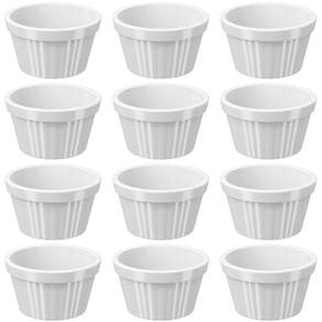 Garantia: 90 dias / Peso: 324g / Cor predominante: branco / Referência: 7896553956139X12 Dimensões de cada ramekin: 7,3cm (D) x 4,1cm (A); Capacidade (cada): 90ml; Conteúdo: 12 ramekins; Material: polipropileno (PP).