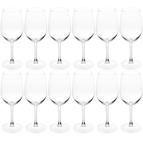 Garantia: 90 dias / Peso: 2,640kg / Cor predominante: transparente / Ref: 7798140275596 Dimensões de cada taça com a base: 8,2cm (D) x 22,3cm (A); Dimensões da área de uso das taças: 6cm (C) x 11cm (A); Conteúdo: 12 taças de vidro para vinho; Capacidade: 420ml; Modelo: Gourmet; Material: vidro.