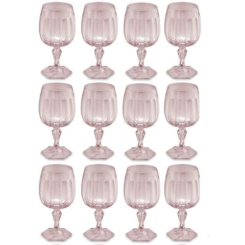 Jogo 12 Taças Plásticas 350ml Rosa Translúcido Água Drinks Suco Uz Bebidas.