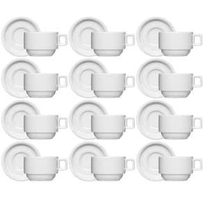 Jogo 12 Xícaras de Chá com Pires 100ml Bar Hotel Germer em Porcelana Branca.