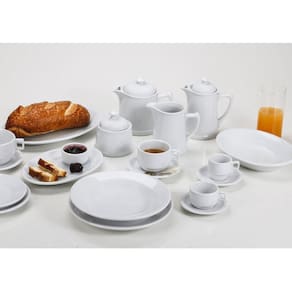 Detalhes do produto: - Classe Única: não são itens quebrados, lascados ou com manchas. Até 30% das peças podem possuir pequenas variações de uma peça para outra; - Possuem esmalte de acabamento superior que foi desenvolvido para suportar a erosão causada pelas lava-louças e danos provocados por talheres; - Não absorvem umidade, são mais higiênicos e possuem melhores propriedades de retenção de calor e brancura; - Empilháveis.