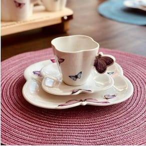 Xicara de Chá em Porcelana com Pires Borboletas 200ml Wolff