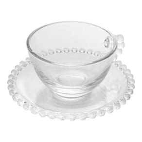 Xícara de Chá com Pires Cristal Transparente Pearl Pérola 180ml Wolff