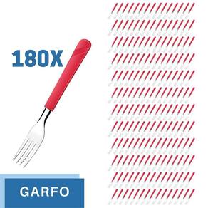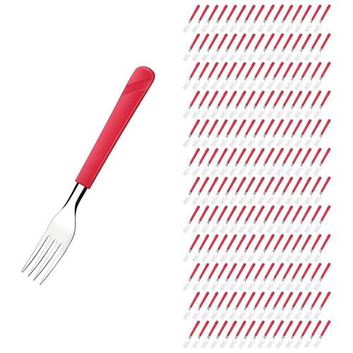 Jogo 180 Garfos Aço Inox e Plástico Vermelho Linha Luna