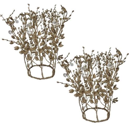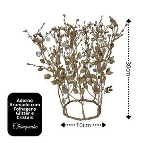 Kit 2 Adornos Natal Coroa Folhagens Champanhe Cristais 30cm