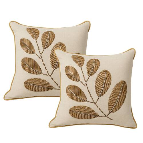 Jogo 2 Almofadas Decorativa Cheia Daphne Folhagens Ouro 42cm