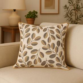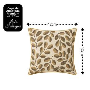 Almofada Decorativa Luxo Daphne 42x42cm – Folhagens Bege e Verde com Borda Aveludada + Enchimento em Fibra de Silicone