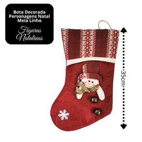 Jogo 2 Botas Decorativa Meia Natalina Papai Noel e Boneco de Neve – Linho Vinho 35cm com Guizos