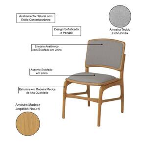 AS IMAGENS SÃO MERAMENTE ILUSTRATIVAS E PODEM SOFRER VARIAÇÕES DE COR E PEQUENOS DETALHES DE ACORDO COM O SEU MONITOR, ILUMINAÇÃO DO AMBIENTE E ATÉ MESMO A SUA PERCEPÇÃO VISUAL.Jogo 2 Cadeiras de Jantar FlorenÃa em Madeira Jequitibà Natural Encosto em Tecido Premium Linho Cinz