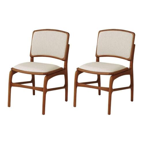 AS IMAGENS SÃO MERAMENTE ILUSTRATIVAS E PODEM SOFRER VARIAÇÕES DE COR E PEQUENOS DETALHES DE ACORDO COM O SEU MONITOR, ILUMINAÇÃO DO AMBIENTE E ATÉ MESMO A SUA PERCEPÇÃO VISUAL.Jogo 2 Cadeiras de Jantar FlorenÃa em Madeira Jequitibà Terra Encosto em Tecido Premium Linho Bege