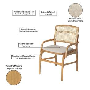 AS IMAGENS SÃO MERAMENTE ILUSTRATIVAS E PODEM SOFRER VARIAÇÕES DE COR E PEQUENOS DETALHES DE ACORDO COM O SEU MONITOR, ILUMINAÇÃO DO AMBIENTE E ATÉ MESMO A SUA PERCEPÇÃO VISUAL.Jogo 2 Cadeiras de Jantar FlorenÃa Estrutura em Madeira Jequitibà Natural BraÃo Encosto Palha Linho Bege