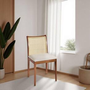 AS IMAGENS SÃO MERAMENTE ILUSTRATIVAS E PODEM SOFRER VARIAÇÕES DE COR E PEQUENOS DETALHES DE ACORDO COM O SEU MONITOR, ILUMINAÇÃO DO AMBIENTE E ATÉ MESMO A SUA PERCEPÇÃO VISUAL.Jogo 2 Cadeiras de Jantar Juliana Jequitibà Terra em Madeira MaciÃa Encosto Palha Linho Bege