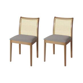 AS IMAGENS SÃO MERAMENTE ILUSTRATIVAS E PODEM SOFRER VARIAÇÕES DE COR E PEQUENOS DETALHES DE ACORDO COM O SEU MONITOR, ILUMINAÇÃO DO AMBIENTE E ATÉ MESMO A SUA PERCEPÇÃO VISUAL.Jogo 2 Cadeiras para Jantar Juliana Jequitibà Natural Estrutura em Madeira MaciÃa Linho Cinza
