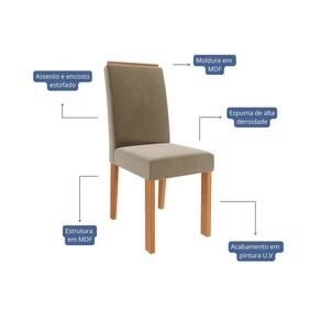 Jogo de Cadeiras Júlia Cimol: assento e encosto estofados com espuma de alta densidade, garantindo conforto superior. Estrutura em MDF com moldura na parte superior, que valoriza o design da sala de jantar. Ideal para compor ambientes elegantes e funcionais. Acabamento da Estrutura: Pintura UV Almofada do assento: Fixa Altura do assento até o chão: 45 cm Ambiente Principal: Sala de Jantar codigo_ean: 7900288335890 Complexidade da Montagem: Média: pode ser montado por mais de uma pessoa e/ou necessite de maior conhecimento para montagem Cor: Cinamomo/Joli Cor do Produto: Cinamomo/Joli Dobrável: Não Estrutura do Encosto: Estofado Giratória: Não Itens Inclusos: 2 Cadeiras e Kit Ferragens Linha ou Coleção: Júlia Manual de Montagem e Instalação: https://product-hub-prd.madeiramadeira.com.br/288397163/documents/90eabd1f-d98c-46d5-8e02-40b100df0aab3403245503517715959882091.pdf Marca: Cimol Material Principal: MDF Necessita Montagem: Sim Origem do Produto: Nacional Peso: 18 kg Possui Apoio para Braços: Não Possui Espaldar: Sim Possui Rodízio: Não Quantidade de Itens: 2 Recomendações de Uso, Manutenção e Limpeza: Para manter seu móvel novo por muito mais tempo, evite locais úmidos, mantenha-o distante de líquidos. Para limpá-lo com segurança utilize uma flanela seca sem produtos abrasivos Sistema de Montagem: Parafusos, porcas e cavilhas. Tipo de Assento: Fixo Tipo de Encosto: Fixo