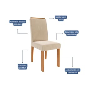 Jogo de Cadeiras Júlia Cimol: assento e encosto estofados com espuma de alta densidade, garantindo conforto superior. Estrutura em MDF com moldura na parte superior, que valoriza o design da sala de jantar. Ideal para compor ambientes elegantes e funcionais. Acabamento da Estrutura: Pintura UV Almofada do assento: Fixa Altura do assento até o chão: 45 cm Ambiente Principal: Sala de Jantar codigo_ean: 7900288335913 Complexidade da Montagem: Média: pode ser montado por mais de uma pessoa e/ou necessite de maior conhecimento para montagem Cor: Cinamomo/Nude Cor do Produto: Cinamomo/Nude Dobrável: Não Estrutura do Encosto: Estofado Giratória: Não Itens Inclusos: 2 Cadeiras e Kit Ferragens Linha ou Coleção: Júlia Manual de Montagem e Instalação: https://product-hub-prd.madeiramadeira.com.br/866917756/documents/60c3c566-b0d2-4316-9f48-52acd806decb3403248503517715960159797.pdf Marca: Cimol Material Principal: MDF Necessita Montagem: Sim Origem do Produto: Nacional Peso: 18 kg Possui Apoio para Braços: Não Possui Espaldar: Sim Possui Rodízio: Não Quantidade de Itens: 2 Recomendações de Uso, Manutenção e Limpeza: Para manter seu móvel novo por muito mais tempo, evite locais úmidos, mantenha-o distante de líquidos. Para limpá-lo com segurança utilize uma flanela seca sem produtos abrasivos Sistema de Montagem: Parafusos, porcas e cavilhas. Tipo de Assento: Fixo Tipo de Encosto: Fixo