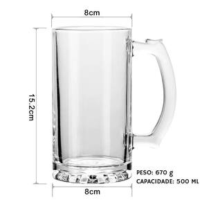 Apresentamos nossa caneca de vidro para chopp de 500ml, uma escolha perfeita para os amantes da boa cerveja. Com capacidade generosa e resistência incomparável, esta caneca é ideal para sublimação e para servir aquela cerveja gelada que todos adoram.