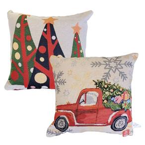 - 02 Unidades Capa Para Almofada Gobelin Natal 45x45cm Estampa Árvore de Natal e Carro Vintage