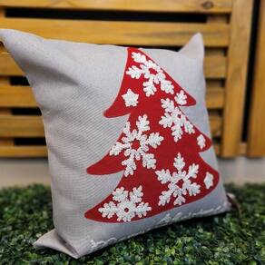 Jogo 2 Capas de Almofada Natal Cinza Bordado Felpudo 45x45cm