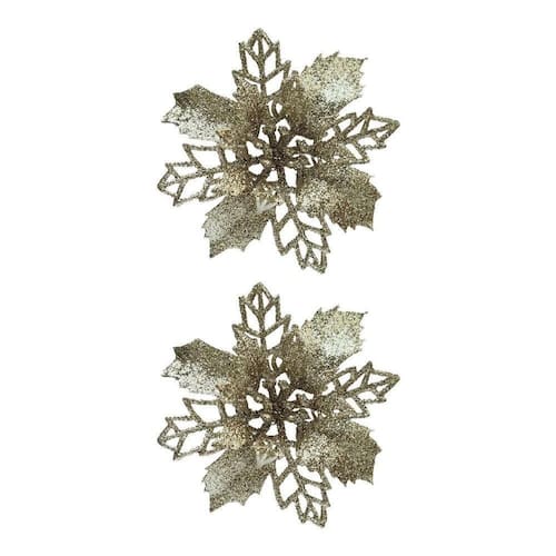 Flor Bico de Papagaio Natalina com Glitter Champanhe Pick com Presilha 9cm (Jogo com 2 unidades)