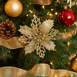 Adicione um toque de brilho e sofisticação à sua decoração natalina com este jogo com 2 flores bico de papagaio modelo pick. Com acabamento em glitter champanhe e design delicado, são perfeitas para realçar guirlandas, arranjos florais, árvores de Natal, embrulhos especiais ou qualquer composição decorativa temática.
