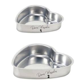 Itens inclusos 1 uma assadeira de bolo coração acetinada n1 Medida interna 19 x 19 x 4 cm - 1,1 lts Medida externa 22 x 22 x 4 cm 1 uma assadeira de bolo coração acetinada n2 Medida interna 24 x 23 x 4,5 cm - 2,1 lts Medida externa 28 x 25 x 4,5 cm Obs.: medida e capacidade aproximada Material: alumínio Espessura de 0,7 a 0,9 mm depende o tamanho