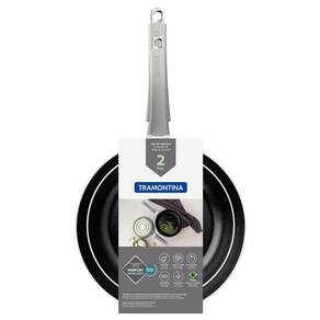 O conjunto de frigideiras Tramontina é composto por 2 peças, produzidas em alumínio com revestimento interno antiaderente em Starflon Premium material que não gruda, é fácil de limpar, mais durável e não prejudicial a sua saúde. Possuem espessura de 3 milímetros e proporcionam um cozimento rápido e uniforme dos alimentos. O cabo é metálico com proteção de silicone, que reduz a propagação de calor e garante um manuseio muito mais confortável e seguro. Produto altamente resistente que permite que seja levada à máquina de lavar louças, facilitando seu dia a dia na cozinha!