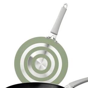 Garantia: 90 dias / Peso: 1.150kg / Cor predominante: verde / Referência: 7891112324886 Dimensões da frigideira menor: 45,7cm (C) x 25,7cm (L) x 9cm (A); Capacidade: 0,9L; Diâmetro: 20cm; Dimensões da frigideira maior: 30cm (C) x 35cm (L) x 35cm (A); Capacidade: 1,8L; Diâmetro: 25cm; Espessura: 3mm; Materiais: alumínio, metal e silicone.
