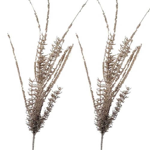 Jogo 2 Galhos Decorativo Natal Alecrim Glitter Champanhe Luxo 57cm - Bela Flor