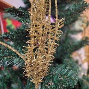 Jogo 2 Galhos Decorativo Natal Alecrim Glitter Dourado Luxo 57cm - Bela Flor