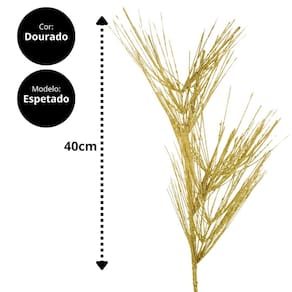 Adicione um toque de luxo e brilho à sua decoração natalina com este elegante galho de espetos dourado. Com acabamento em glitter brilhante, ele traz sofisticação e luminosidade para árvores, guirlandas, arranjos de mesa ou qualquer espaço que precise de um charme especial. Com 40cm de comprimento, é uma peça versátil para diversas composições decorativas.