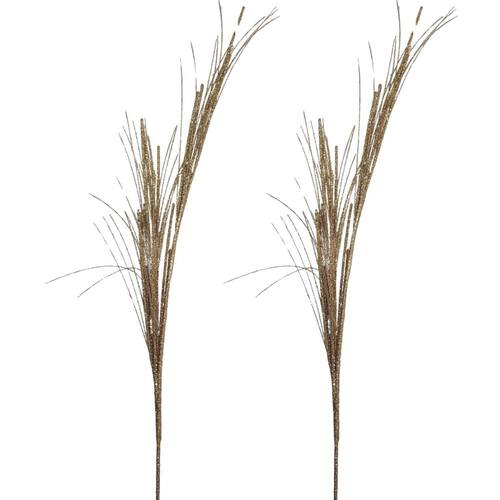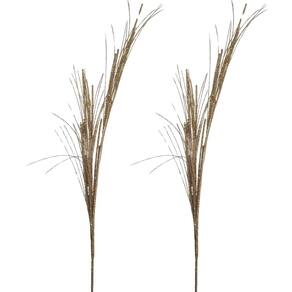 Jogo 2 Galhos Natal Decor Haste Ramos Glitter Champanhe 60cm