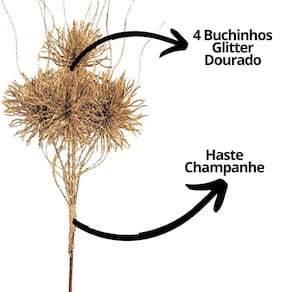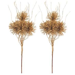 2 Galhos Haste Natalino com 4 Buchinhos Glitter Bronze