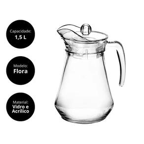 Conteúdo da embalagem: 02 unidades Jarra de Vidro Flora com Tampa Acrílico 1,5 Litros
