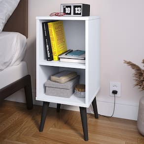 A Mesa de Cabeceira Charme possui um design retrô com pés palito que trazem beleza e leveza ao espaço. O nicho aberto é perfeito para acomodar livros, objetos decorativos ou itens de uso diário.