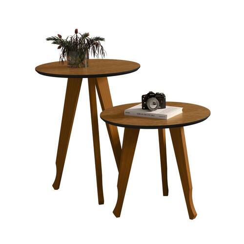 Jogo 2 Mesas Lateral E Apoio Redonda Pés Madeira Freijó/Preto