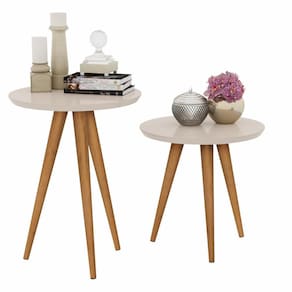 Jogo 2 Mesas Retrô Pés Palito, Lateral E Apoio - Off White Jogo de 2 mesas lateral e apoio, é vendido pela comprar móveis em casa, oferece um ambiente sofisticado de alta qualidade e acabamento para sua sala. Dimensões do produto montado: Mesa lateral: Altura: 47 cm Largura: 45 cm Profundidade: 45 cm Mesa apoio: Altura: 62 cm Largura: 45 cm Profundidade: 45 cm Observações: - estilo retrô; - produzida em mdf de 15mm; - pé de madeira maciçaPintura:Produto com pintura ultravioleta, maior resistência e durabilidade, além de proporcionar um acabamento perfeito para o produto.Instruções de uso e manutenção:Limpar apenas com pano levemente umedecido com águaMontagem:Este produto acompanha manual de instrução detalhando passo a passo de como montar.A montagem do produto é de fácil entendimento, mas não deixamos de ressaltar que a mesma deverá ser feita por um profissional, para que não ocorram danos no produto.Atenção: a montagem não é oferecida pela comprar moveis em casa, a montagem do produto é por conta do comprador.Fotos meramente ilustrativas não acompanham os produtos de decoração.Os produtos não são acompanhados de produtos de decoração vasos, revistas, etc. .