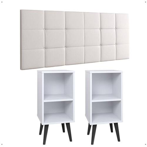 Esse conjunto de produtos composto pela Mesa de Cabeceira Charme e Cabeceira Bia, são ideais para você que busca inovar o design do seu quarto.