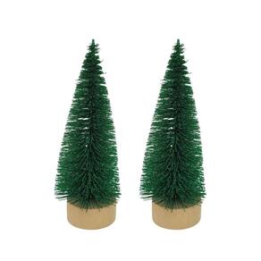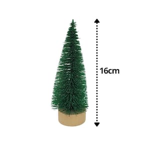 -02 Unidades Mini Pinheiro Decorativo Verde Glitter 16cm Base Madeira