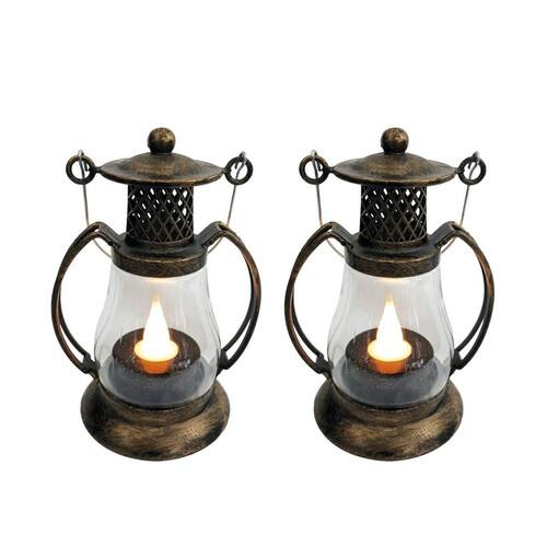 02 Mini Lamparina LED Decorativa Ouro Envelhecido