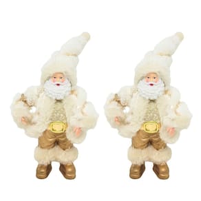 Jogo 2 Papai Noel Mini Branco e Dourado Luxo 20cm
