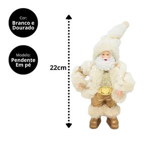 02 Unidades Papai Noel Mini Branco e Dourado Luxo 20cm