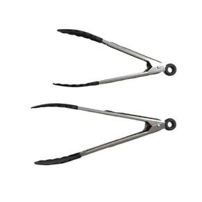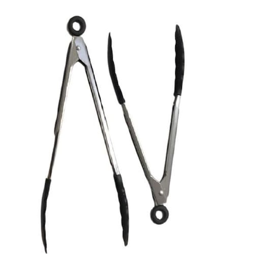 Informações do Produto: - Jogo com 2 pinças multiuso em silicone - Tamanho: 29,5 cm e 25,5 cm - Cor: Preto - Material: Silicone e aço inox