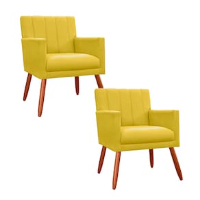 Jogo 2 Poltronas Decorativa Para Sala de Sala de Estar Cecília Corano Amarelo - LM DECOR