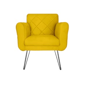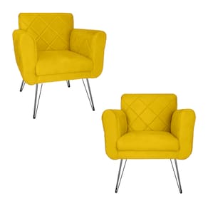 Jogo 2 Poltronas Decorativas Para Escritório Pés de Ferro Isabella Corano Amarelo - LM DECOR