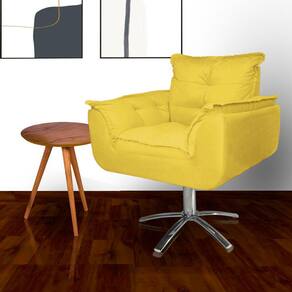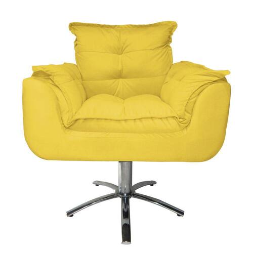 Jogo 2 Poltronas Estofada Consultório Base Giratória de Metal Opala Suede Amarelo - LM DECOR