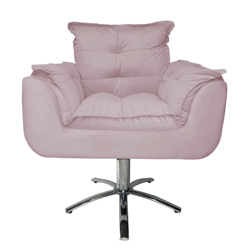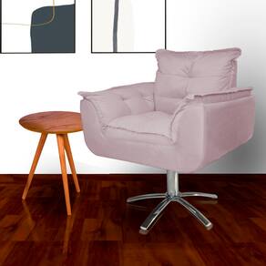Jogo 2 Poltronas Estofada Consultório Base Giratória de Metal Opala Suede Rose - LM DECOR - Rosê