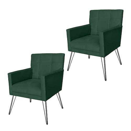 Jogo 2 Poltronas Estofadas Para Consultório Pés de Ferro Onix Suede Verde - LM DECOR