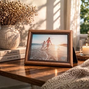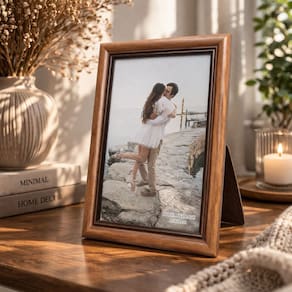 O Jogo de Porta Retratos 10x15 e 15x21 em madeira marrom fosco são a escolha ideal para quem busca um estilo clássico e elegante na decoração. Com acabamento suave e detalhes frisados na moldura, ele valoriza suas fotos com um toque tradicional e aconchegante.