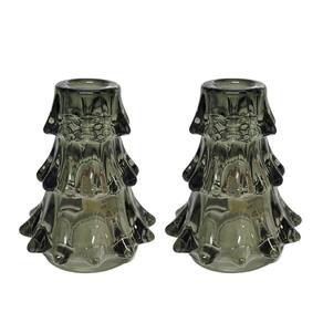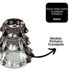 Kit 2 Porta Velas Natal Vidro Cravejado Pinheiro Verde 11cm